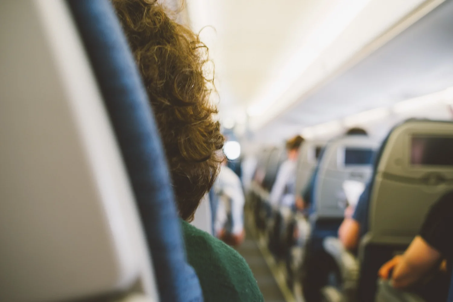 Lady's head as the plane sat on the tarmac.