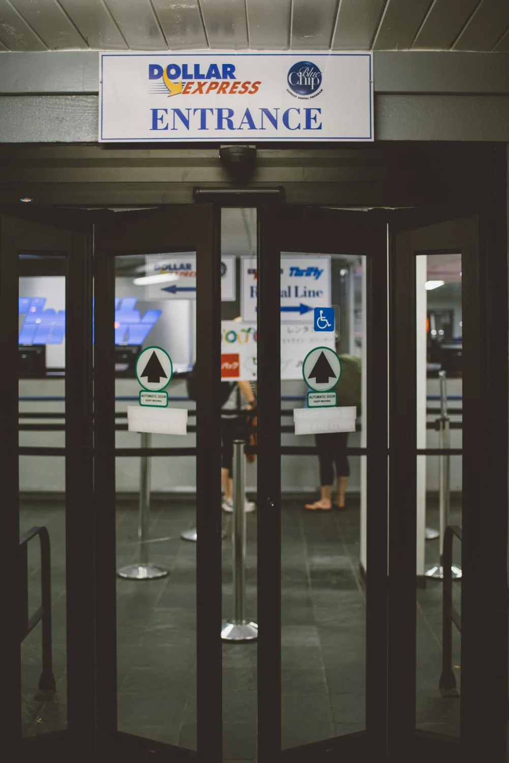 Mom exiting Thrifty rentals.