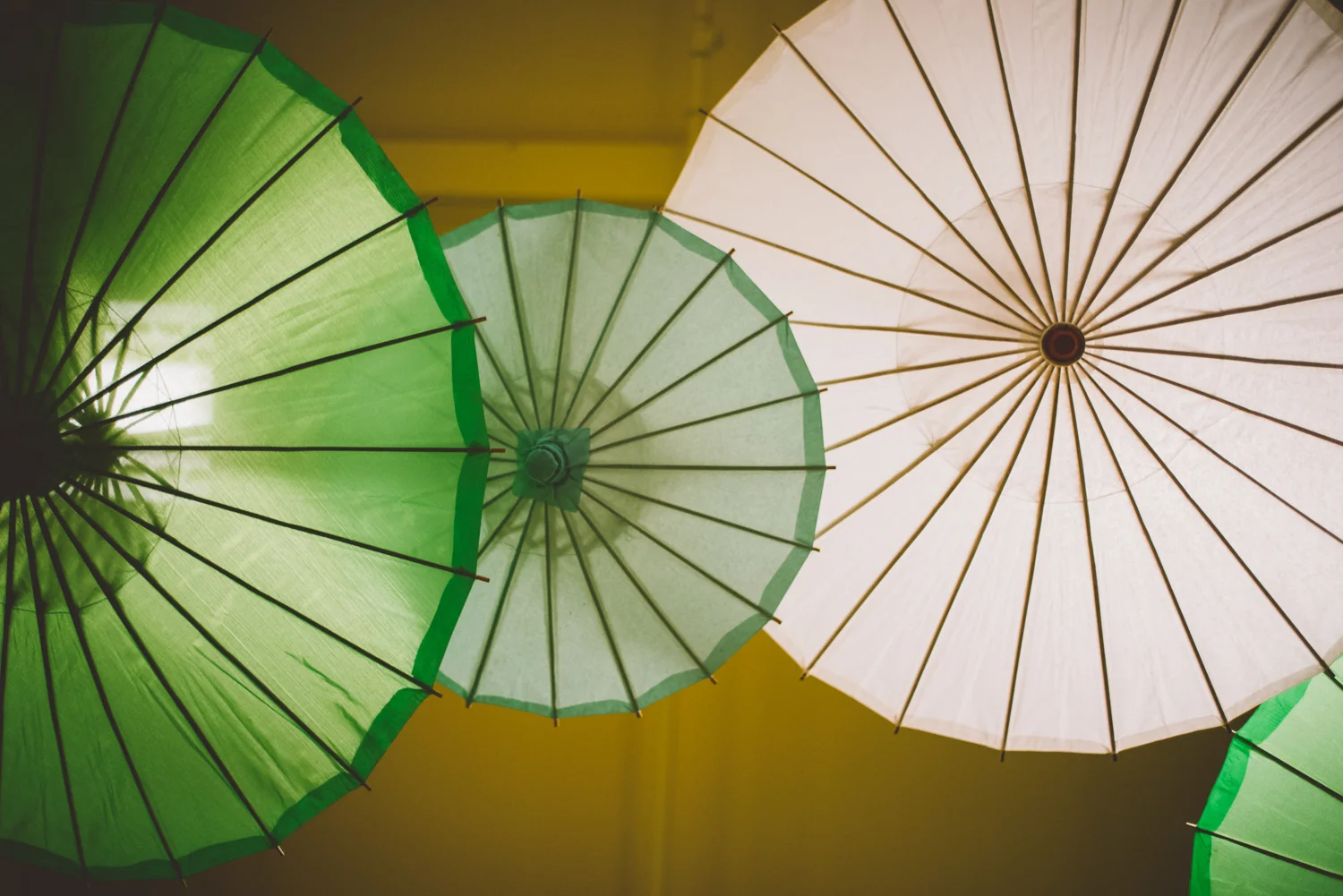 Umbrellas hung from the room throughout the store